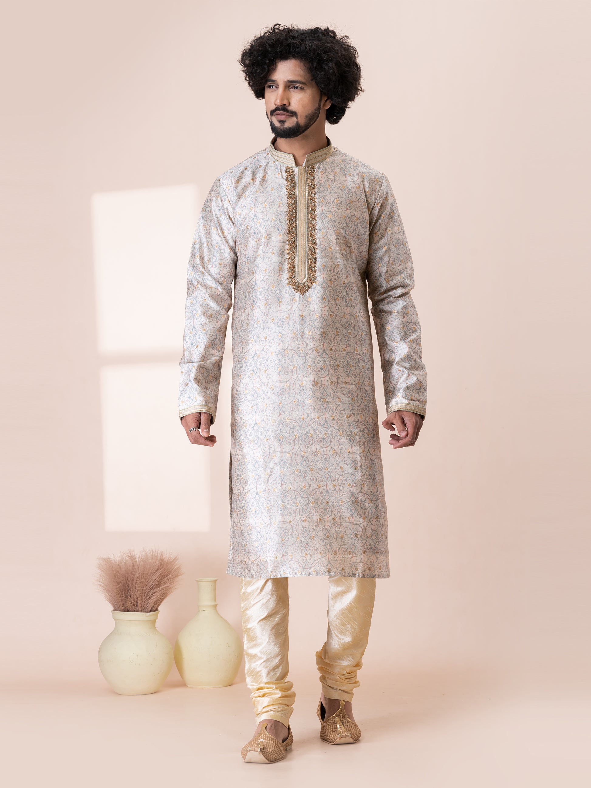 - Subtle prints with embossed patterns on the kurta for a refined look