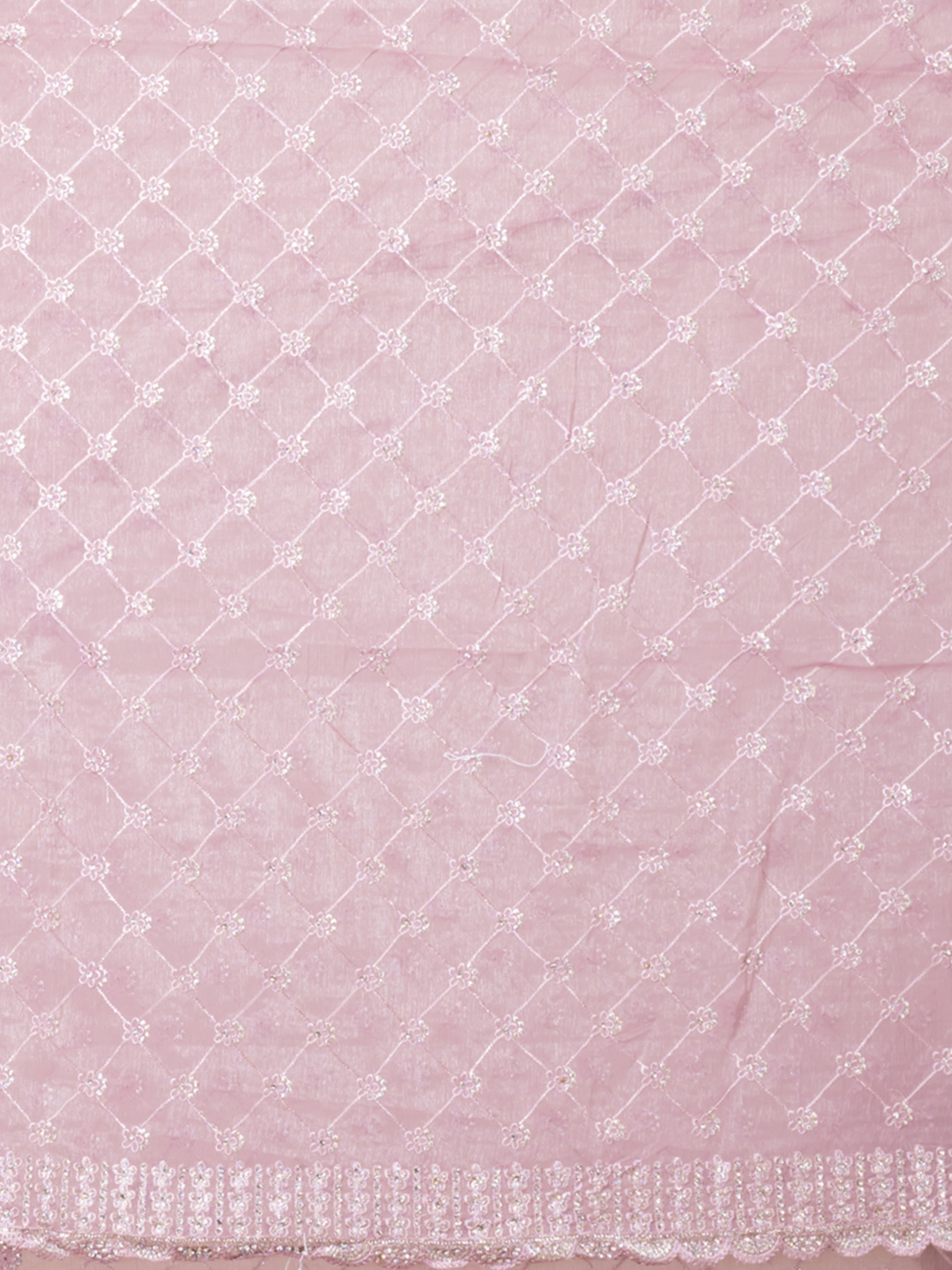 Step into timeless elegance with this stunning Pastel Purple Net Saree, a perfect blend of tradition and modernity. Crafted from lightweight, sheer net fabric, this saree drapes beautifully, offering a delicate and ethereal look. The intricate white embroidery across the body creates a subtle geometric pattern, while the scalloped border, adorned with shimmering sequins, adds a touch of glamour. Paired with a matching blouse, this saree is ideal for festive occasions, weddings, or any special event where you want to make a graceful statement.