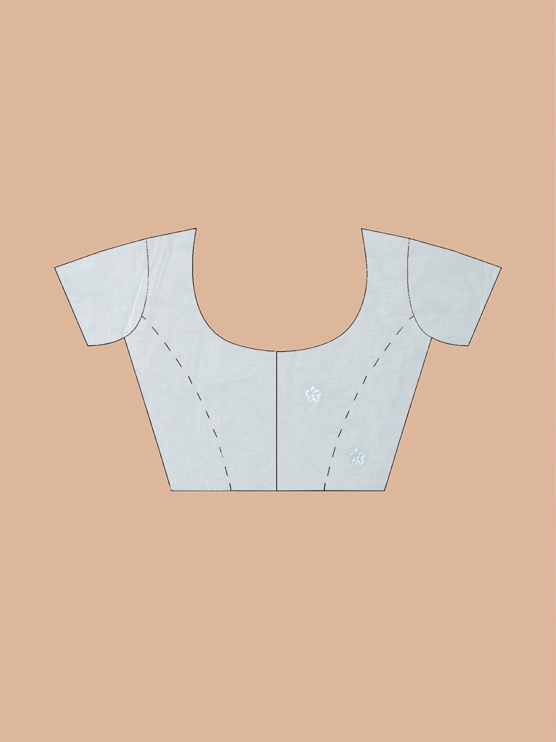 Pair this saree with silver or diamond jewelry, such as a delicate necklace and dangling earrings, to enhance its serene appeal. Style your hair in a sleek bun or soft curls to complement the saree’s airy vibe. For a modern touch, add a statement belt over the waistline. Complete the look with metallic heels and a clutch in neutral shades like silver or ivory to let the saree’s subtle beauty stand out.